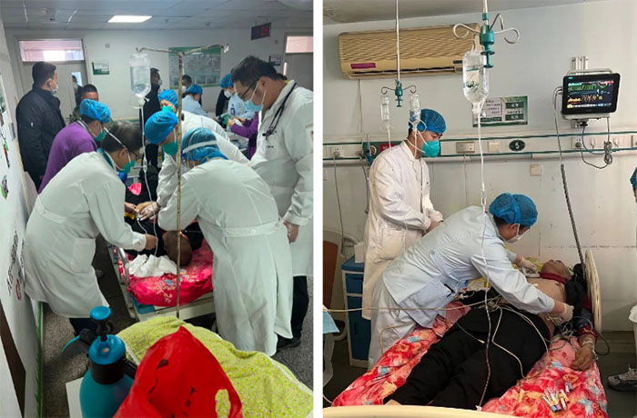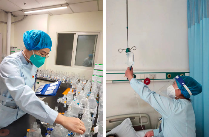 众所周知,冬季是心血管疾病的高发季节,且各种流行性疾病传播迅速,收治到心内二科病房的急危重症病人越来越多。科室医护人员克服各种困难,坚持轻伤不下火线,只要吃药后高烧能退下来,大家基本上就不休息。隋云霞主任介绍说:全科医护人员基本上都“阳”了一遍了,但即使是在发烧最厉害的那两天,大家也没有说要请假休息。科室收治的患者已经达到80多位,护士们基本上都是带着病在岗工作的。一天夜里,由于用氧量剧增,需要临时调运氧气瓶。本来就身单力薄的护士于文雅还烧着高烧,为了让患者能够早一分钟用上氧气,她招呼来医院探望自己的爱人,让爱人帮着把氧气第一时间送到患者床旁。