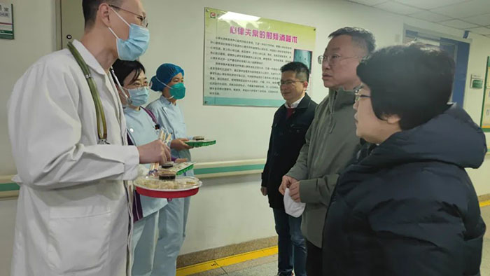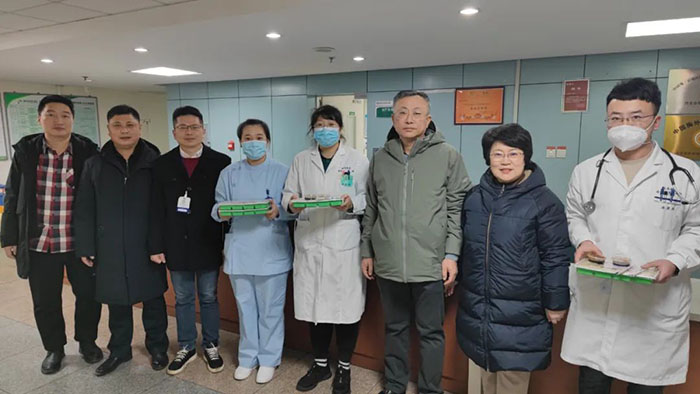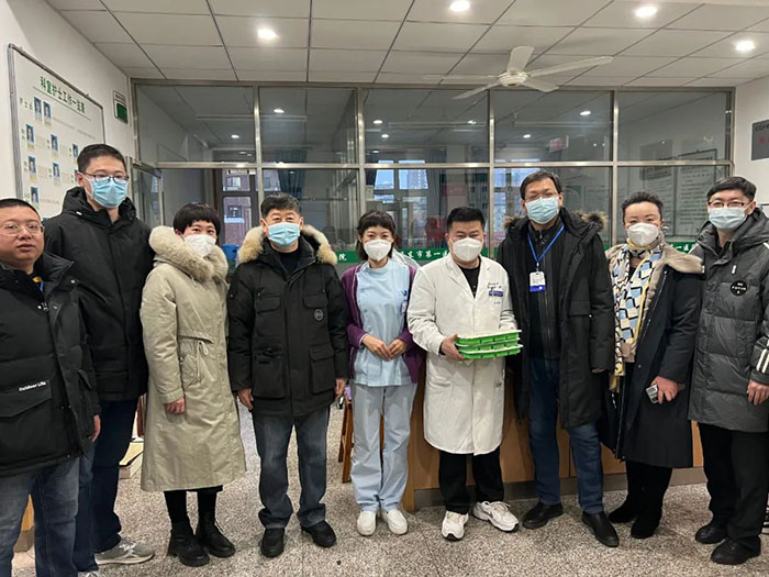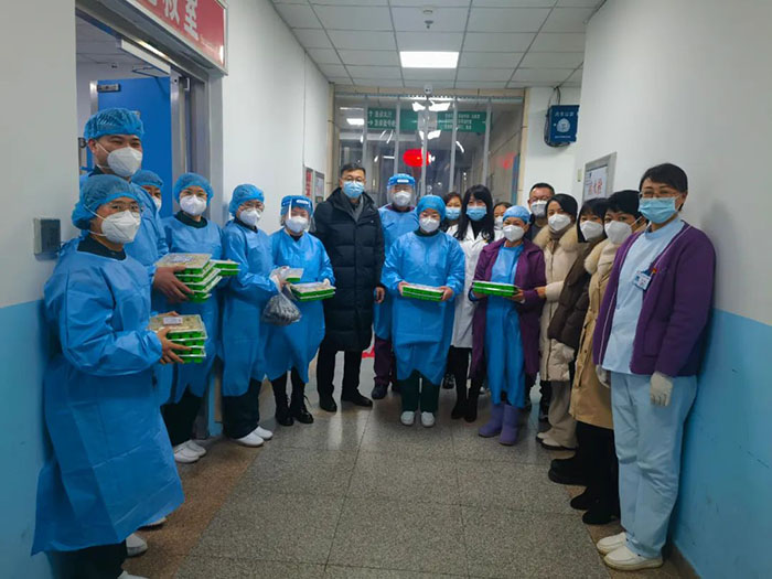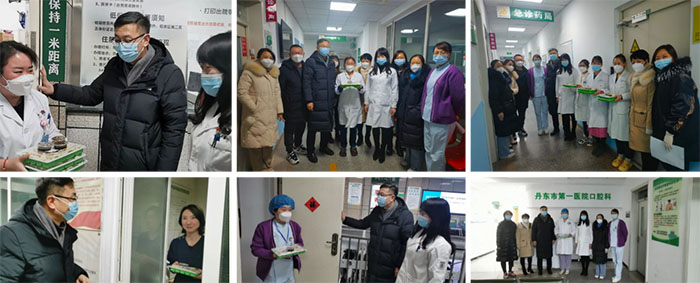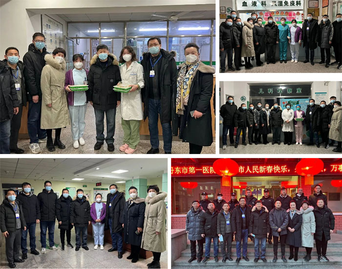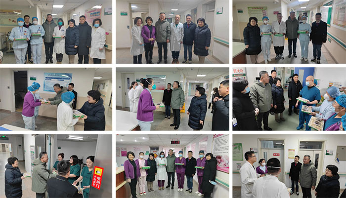 在除夕当天傍晚,院领导逐个楼层走访慰问了坚守在临床一线的值班人员并送上了热气腾腾的水饺和亲切的问候与深切的祝福,同时也感谢医务人员们舍小家顾大家,坚守在工作第一线。