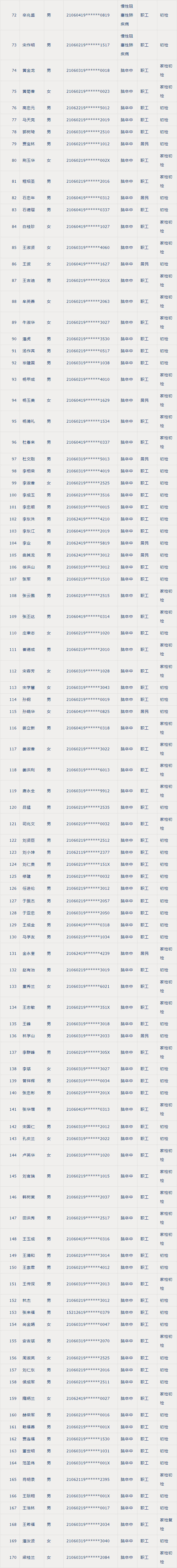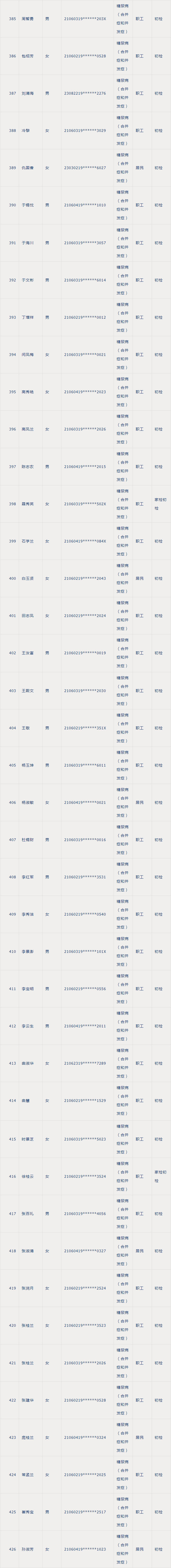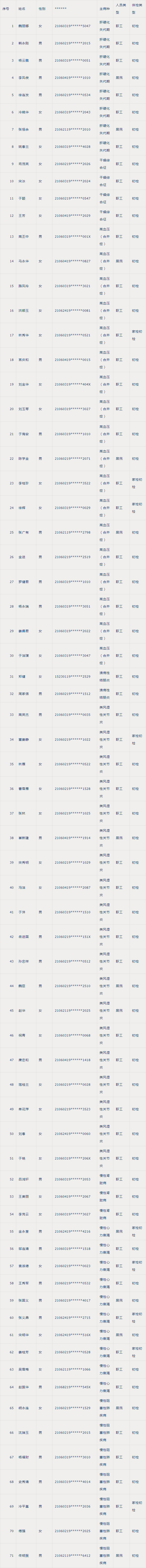 慢病体检合格人员名单公示如下: