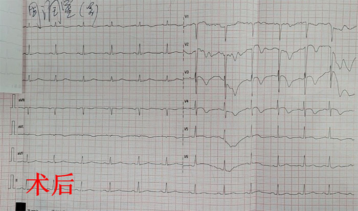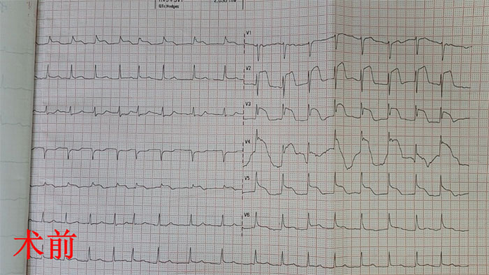 我院急诊接到通知后,火速将患者接到急诊抢救室,开通院内绿色通道,马上对症实施抢救、检查等救治工作。经心内科医生会诊,确诊周先生为急性广泛前壁心肌梗死。医疗团队结合患者病情,立即按照我院胸痛中心相关流程进行进一步治疗,决定立即实施急诊心脏支架手术治疗。
