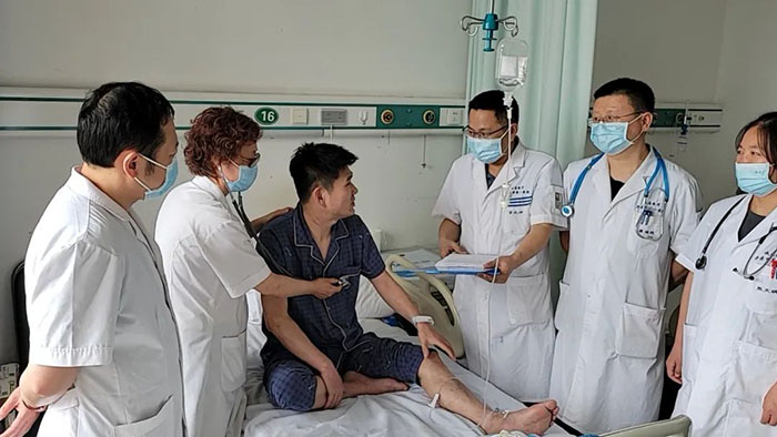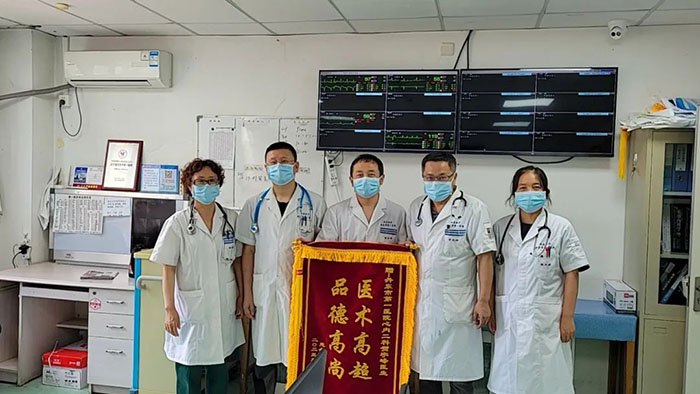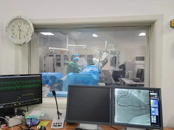 心内科医疗团队在隋云霞主任、宫兆斌副主任的带领下,迅速做好术前准备,为周先生进行急诊冠脉造影并成功实施“经皮冠状动脉介入治疗”。术后患者胸闷胸痛得到有效缓解,心脏血管堵塞危险成功解除,患者最终转危为安。目前周先生病情稳定,恢复良好,将择日出院。
