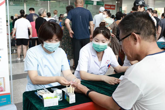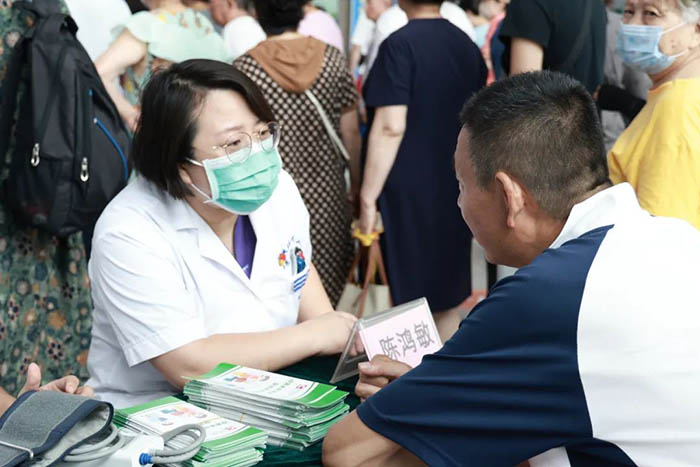 活动现场,科室主任陈鸿敏带领科室的医疗、护理专家,为市民提供免费的血糖、血压测量,健康知识解答等医疗服务,共计测血糖100余人次,测量血压80余人次,解答健康咨询100余人次,发放健康宣传资料100余份,现场气氛热烈,受到广大市民一致好评。