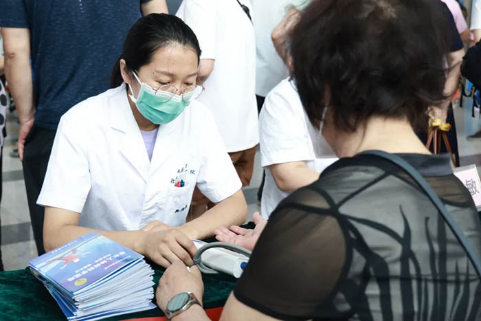 7月31日上午,我院全科医学科举行了以“科学健身,助力老年健康” 为主题的义诊活动。本次活动旨在贯彻落实《国家卫生健康委办公厅关于组织开展2023年老年健康宣传周活动的通知》(国卫办老龄函〔2023〕260号)要求,实施积极应对人口老龄化国家战略,宣传普及老年健康政策和科学知识,提高老年人健康素养和健康水平。