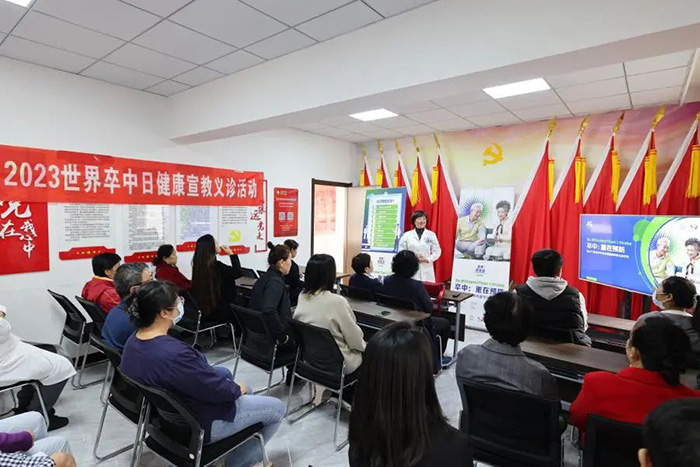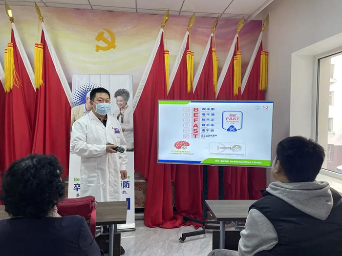 本次活动由神经内一科主任万里姝主持。她向社区居民介绍了我院卒中俱乐部的基本情况、世界卒中日的主题含义以及本次活动的主要内容。