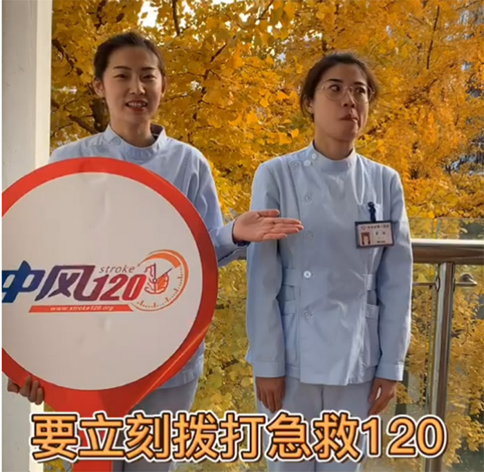 由科室护士演绎的科普视频《中风120》,以诙谐幽默、通俗易懂的方式,指导大家在生活中如何快速识别脑卒中,提醒大家牢记及时拨打120。