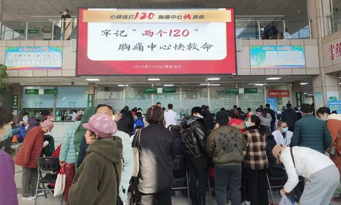 2023年11月20日是第10个“中国1120心梗救治日”,“1120”的含义有两个:一是急性心肌梗死发生后要迅即拨打120,二是急性心肌梗死抢救的黄金时间为120分钟。为提高市民对急性心肌梗死严重性与防治重要性的认知,普及急性心肌梗死的规范化救治流程,11月17日上午,我院心内二科举办了冠心病、急性心肌梗死主题义诊活动。
