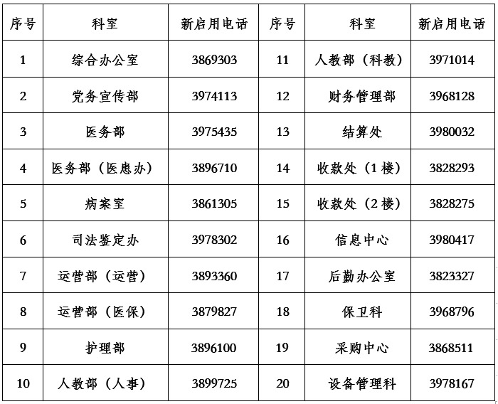 新电话号码将于12月1日全面启用,同时原电话号码停用,如有来电请拔打新启用电话号码。望市民及广大群众知悉!近期因网络施工改造可能造成原电话无法拨通,给您带来的不便敬请谅解。