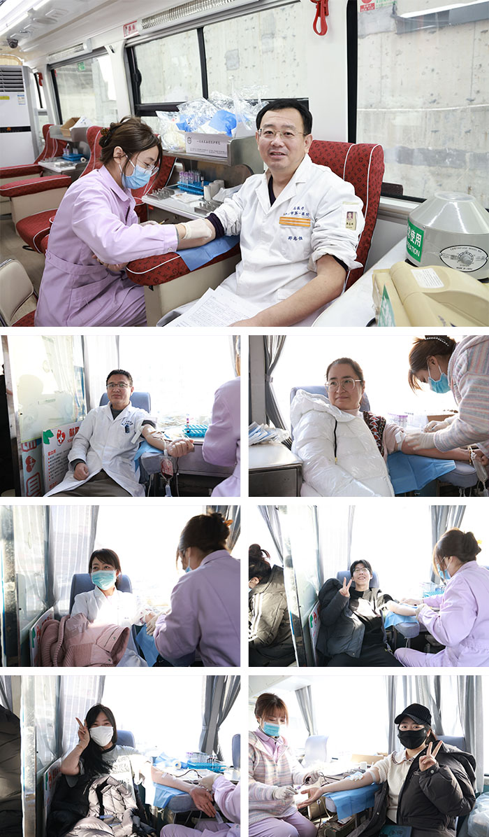 参与献血的医务人员整齐有序地排队,填写表格等候采血,纷纷挽起衣袖捐出一份热血。各党支部密切配合,组织志愿者做好现场引导。
