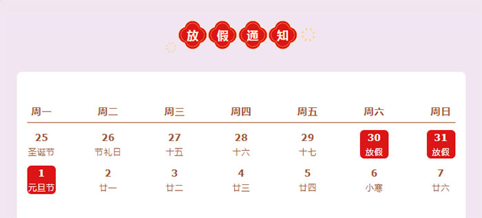 门诊西药房: 12月30日、1月1日:8:00至12:00
