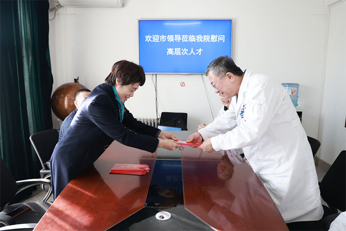 杨丽杰副主席充分肯定了我院在市委、市政府及市卫生健康委的正确领导和支持下,近年来所取得的各项喜人成绩。她对我院各位市级专家为丹东市健康事业所做出的贡献表示肯定,向他们表达亲切的慰问,传达了丹东市委、市政府对医疗人才的尊重、关心和爱护,并转交了慰问金。