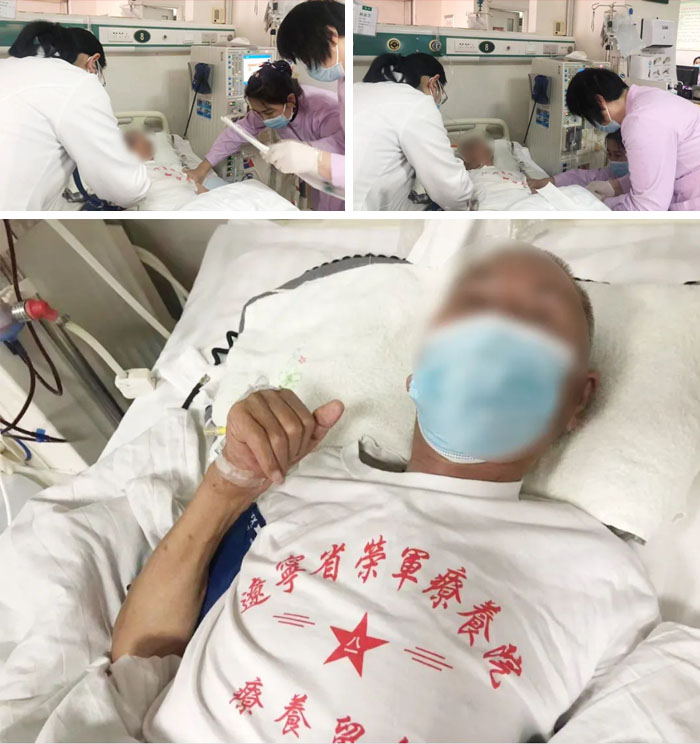 张老是一名患有尿毒症的荣养军人,一直在我院接受规律性血液透析治疗。张老在春节前夕又罹患胆囊炎,本来想着坚持一下,一切都等着过了年再说。然而疾病不等人!张老因并发胆囊炎、肺内感染等多种诱发因素,导致他头昏脑胀、周身疼痛,一种前所未有的痛苦折磨着他。深感不妙的家属立即办理住院,张老甚至感觉自己时日不多,用仅剩的最后一丝力气让女儿把外地的亲人都叫回来想见最后一面,随后就丧失了理智,陷入昏迷之中。