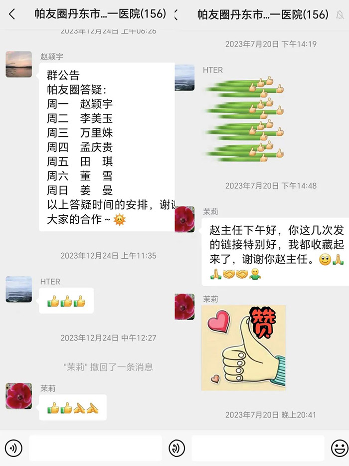 多年来,我院神经内科始终致力于帕金森病的防治工作。科室在全院的系统谋划、统筹安排下,于2018年正式开设帕金森病专科门诊,对患者进行量表评估、病情分级分期,并为其制定个体化诊疗方案。2019年科室建立“帕友圈”微信群,义务普及帕金森病相关科普知识,为帕友们答疑解惑。在每年的“世界帕金森病日”期间,均开展帕金森病大型义诊及健康宣教活动,受到了帕金森病患者及家属的热烈欢迎。科室率先在丹东地区引进经颅磁刺激技术,治疗帕金森病运动症状和非运动症状,缓解患者的病痛。同时,科室还多次邀请省内外知名帕金森病专家到院会诊、授课,为患者解决诊治难题的同时,也促进了丹东地区各医院之间的学术交流,为提升丹东地区帕金森病的临床诊治能力和学术水平,起到了积极的推动作用。
