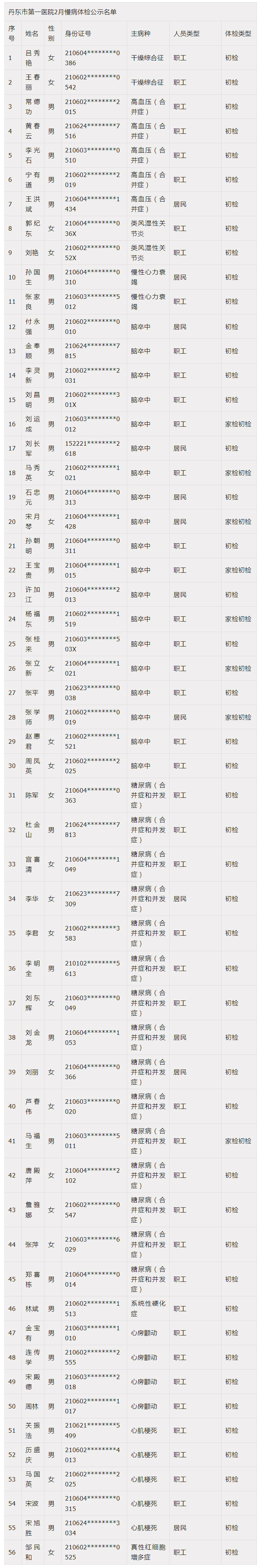 按照丹东市医疗保障局、丹东市医保中心门诊慢特病体检工作统一部署,现将丹东市第一医院2024年2月门诊慢特病集中体检认定合格名单进行公示。本次公示的体检合格人员于2024年3月起享受相应门诊慢特病待遇,请自行查询。