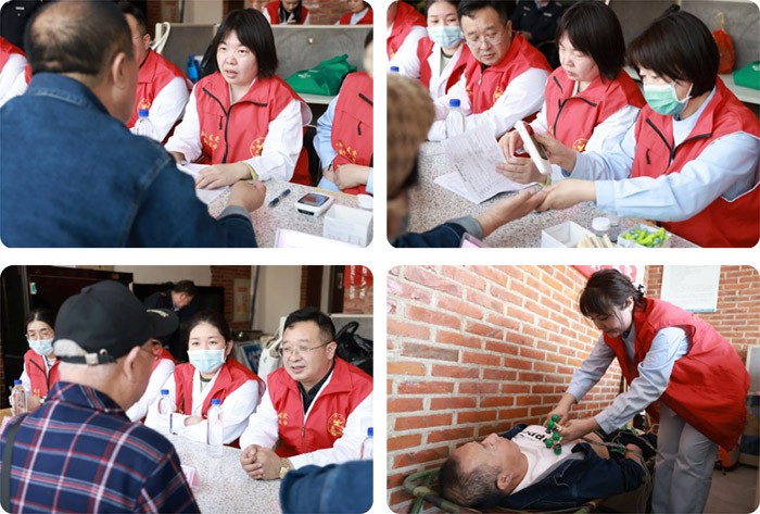 由我院心内科、神经内科、普外科、内分泌科、眼科等科室的医护志愿者们组成义诊队伍,为居民免费提供基础身体功能健康检查、用药指导、健康宣教等服务。他们就居民关心的健康问题进行耐心细致地解答,并针对老年人频发的常见病、多发病、慢性病的治疗进行科普宣传。