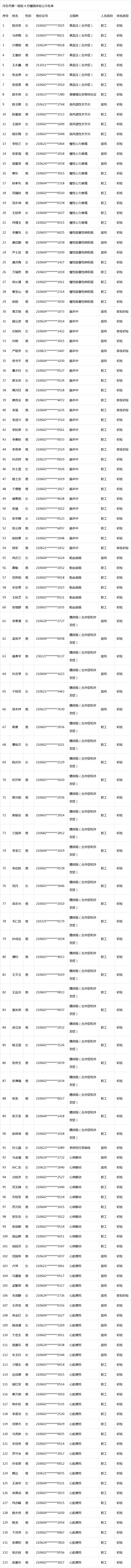 四月慢病体检公示名单