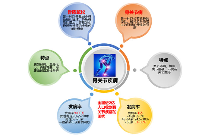 股骨头坏死、膝关节骨性关节炎、脊柱疾病(颈椎病、腰间盘突出)等相关疾病。同时提供免费的快速骨质疏松检测。