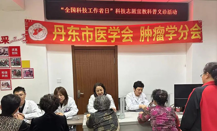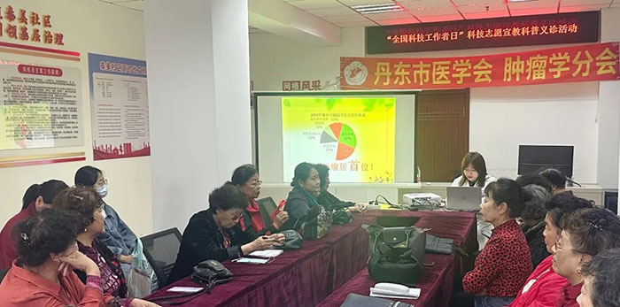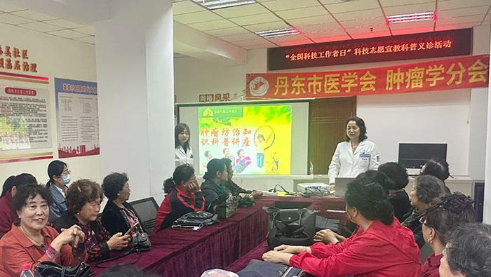 5月23日,在第八个“全国科技工作者日”来临前夕,我院肿瘤内科医疗专家志愿者团队,在科主任樊金霞的带领下,来到元宝区泰美社区服务中心,进行科普义诊活动。本次活动旨在弘扬科学家精神,勇当高水平科技自立自强排头兵,积极响应广大科技工作者“向世界科技强国进军”的号召,努力提升公众科学文化素质,倡导健康生活理念。