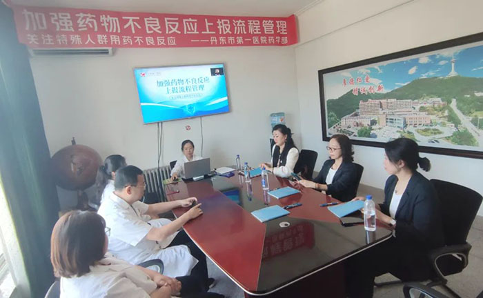本次会议邀请了丹东市中心医院妇儿院区药学部车晶玉主任、丹东市中医院关巍主任、丹东市第六人民医院王晓云主任等多位药学专家参加会议。会议的培训方向主要围绕老年人、肝肾功能不全人群、儿童、妊娠及哺乳期妇女等特殊人群用药以及不良反应上报流程等内容展开。我院药学部主任康丹红主持会议。