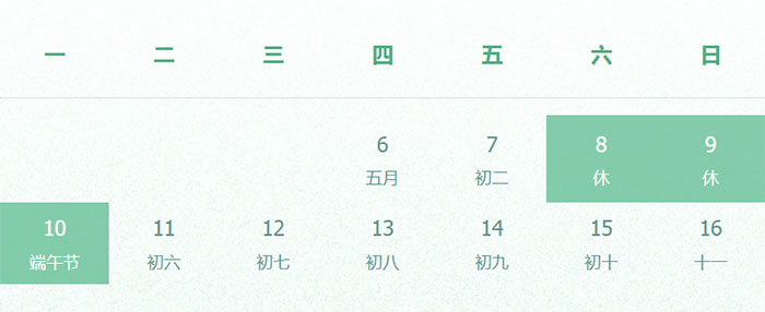 6月8日至6月10日放假,共3天。