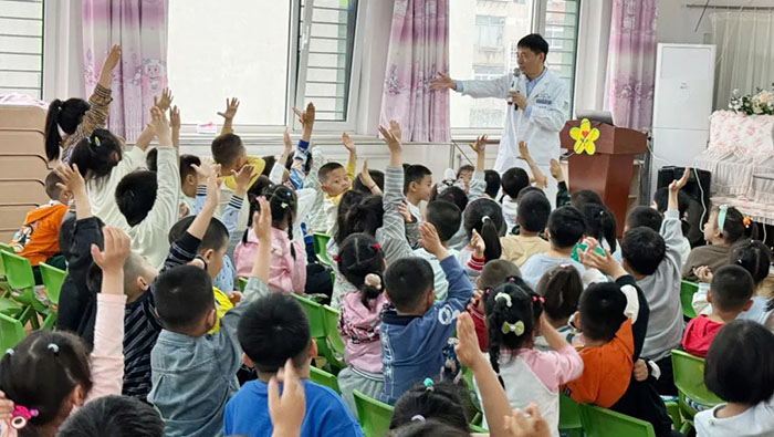 小朋友们随着眼科赵连凯副主任的引导,踊跃发言,讲出自己的爱眼好习惯。