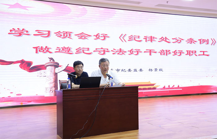 为加强医院党风廉政建设,进一步增强全体党员的纪律意识和规矩意识,我院于6月27日组织开展了一场关于解读《中国共产党纪律处分条例》的专题党课。院领导班子、中层干部及部分党员参会。