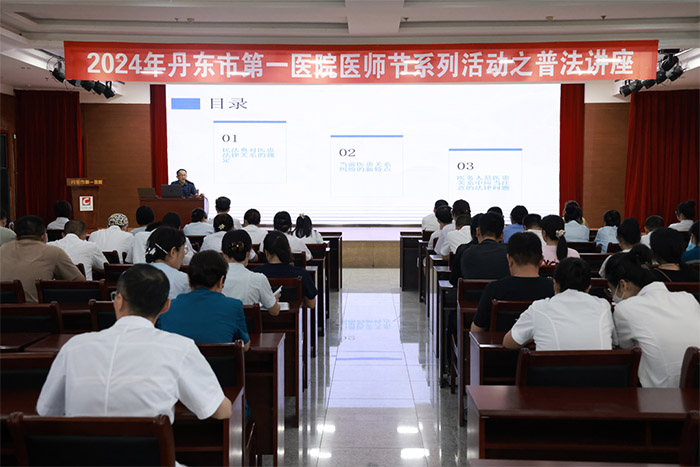 8月16日,在第七个“中国医师节”来临之际,为进一步加强我院医务人员的法律意识、风险意识和安全防范意识,不断提高医疗服务质量,依法保护职工和患者利益,我院举办了专题普法讲座。本次讲座由丹东市律师协会副秘书长姜勇律师来院授课,结合典型案例,为我院广大医务工作者详细讲解了医疗行业相关的法律知识。