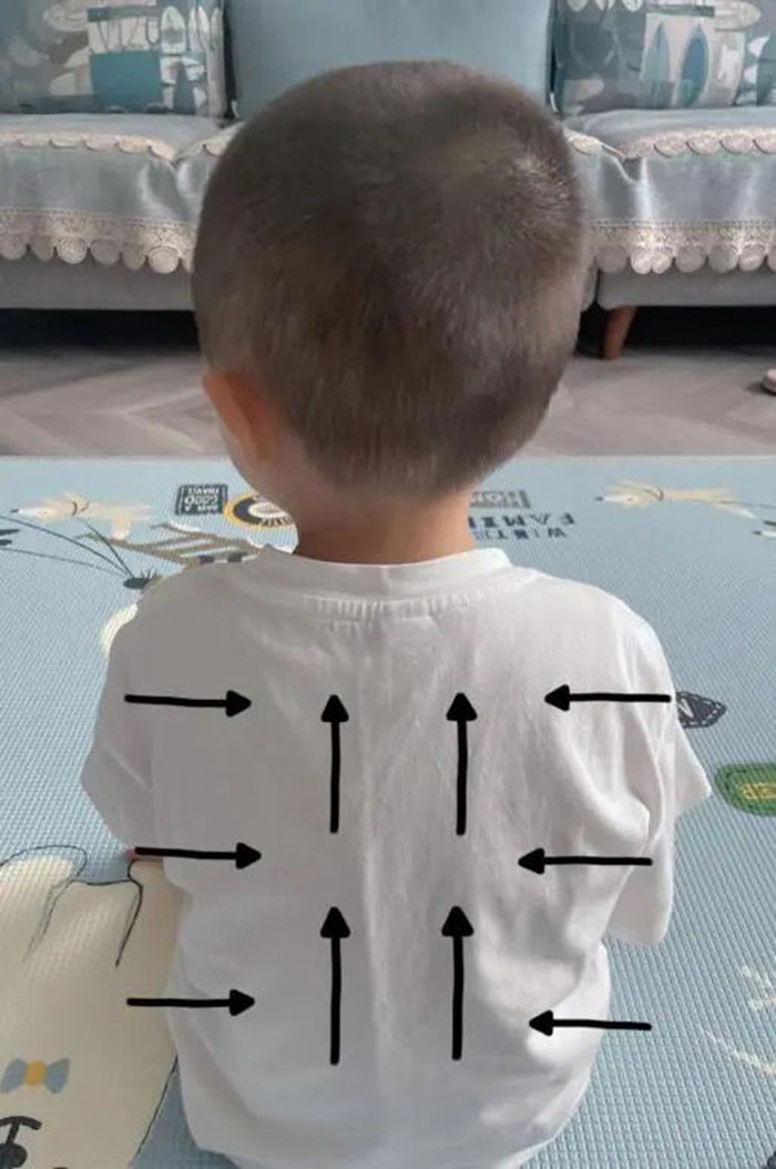 1.给孩子取坐位或侧卧位,用单层薄布覆盖叩击部位,以防止直接叩击引起皮肤发红,但覆盖物不宜过厚,以免降低叩击效果。