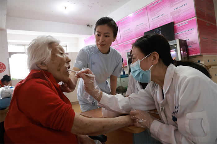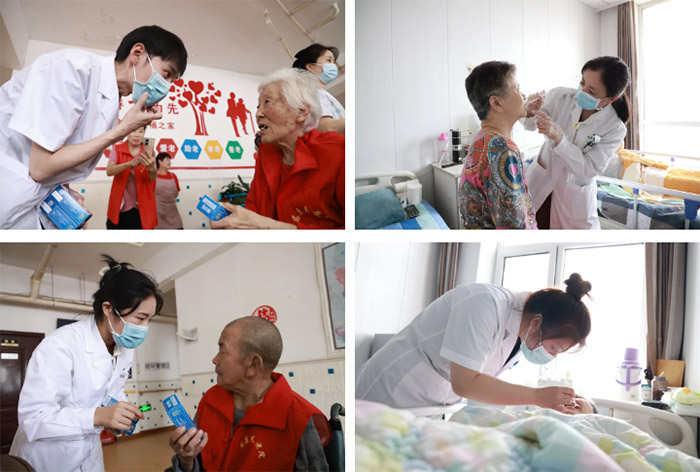 讲座结束后,医生们仔细地检查了各位老人的口腔情况,特别是卧床老人的牙齿、牙龈、口腔黏膜等情况,同时还为老人们提供了个性化的口腔护理建议。我院口腔科医护人员还为老人们送去了漱口水、纱布棉球、酒精碘伏和牙刷牙膏等口腔护理用品,老人们的脸上洋溢着幸福的笑容。