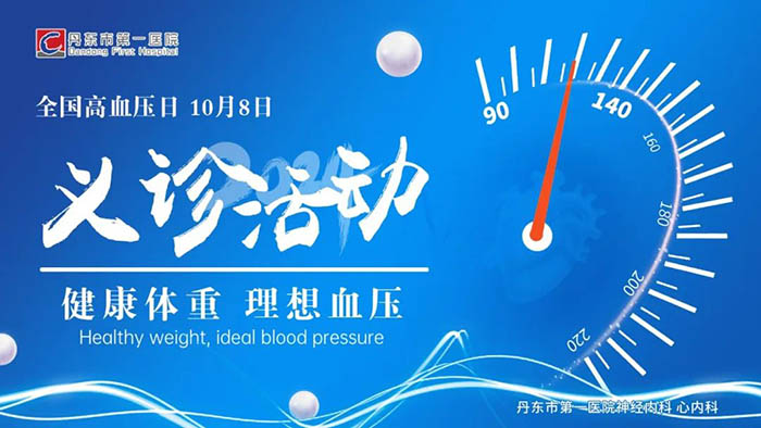 今年的10月8日,是第27个全国高血压日。为提高公众对高血压病的认识,提升全社会对高血压病防控意识,我院神经内科与心内科联合,将于10月8日开展“健康体重,理想血压”主题义诊活动,欢迎广大市民朋友积极参与。
