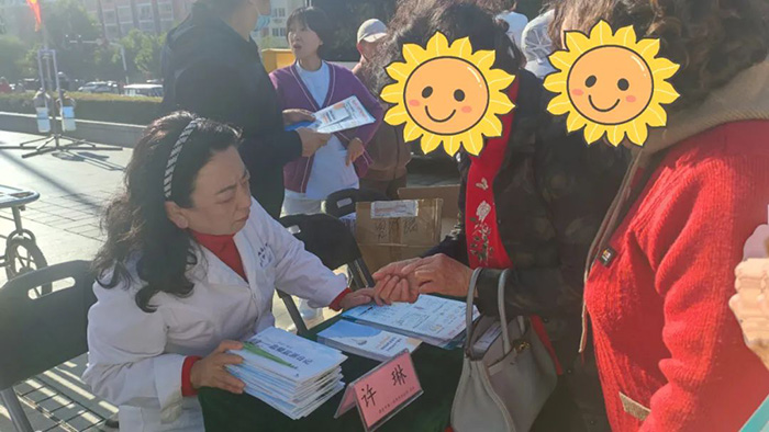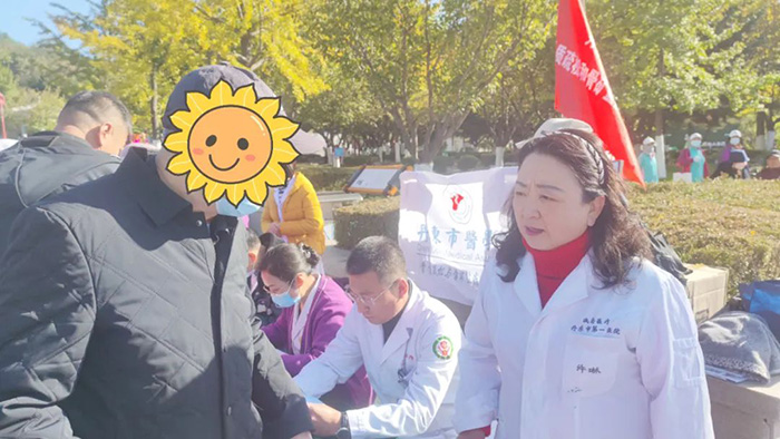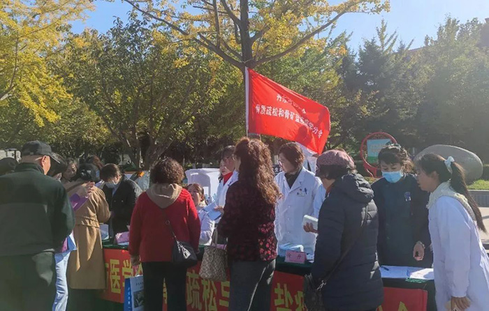 在活动现场,市医学会骨质疏松与骨矿盐疾病学分会主任委员、我院内分泌科主任许琳,带领我院内分泌科的医护人员和骨松分会的委员专家们,为前来参与活动的市民群众免费提供疾病咨询、健康科普、一分钟骨质疏松测试、评估体质指数,以及测血压、测血糖等医疗服务。