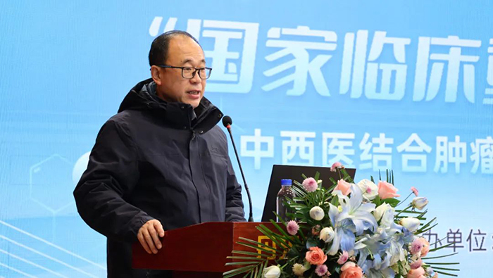 我院副院长、中日医院中西医结合肿瘤专科医联体丹东市第一医院负责人金京哲在致辞中表示:“恶性肿瘤发病率与死亡率高居不下,攻克此难题迫在眉睫。恶性肿瘤是局部症状突出的全身性疾病,需要局部治疗与全身治疗结合。坚持中西医并重,优势互补,协调发展的中国特色健康模式是我们的必走之路,是目前肿瘤治疗最理想的模式。相信未来在贾立群教授专家团队引领下,我院能继续强化人才梯队培养,提升专业技术,开展多中心研究合作,参与临床试验和课题研究,增强科研实力,推动丹东肿瘤事业的高质量发展,为健康中国添砖加瓦。”