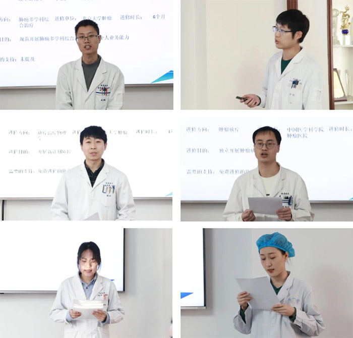 申请2025年度到中国医学科学院北京协和医院、中国医学科学院肿瘤医院、中国人民解放军总医院、复旦大学附属中山医院、北京大学人民医院等单位外出进修的27名临床专业技术骨干,分别就进修拟深造专业、预期效果、回院拟提升和开展的医疗技术,以及需要医院提供的支持进行了申请答辩。