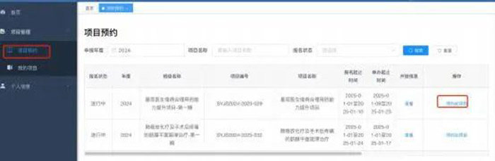 1.点击左侧菜单【项目预约】