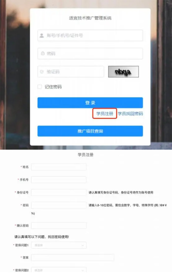1.点击学员注册,根据相应要求填写注册信息