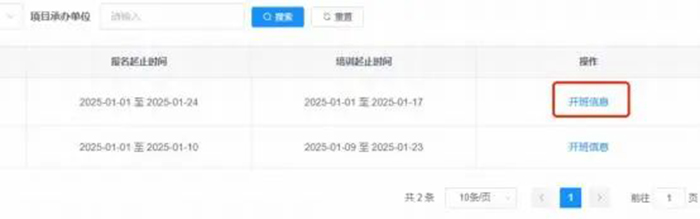 2.点击项目开班信息可查询项目开班详细信息