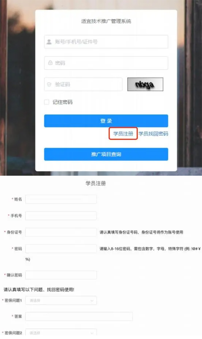 1.点击学员注册,根据相应要求填写注册信息