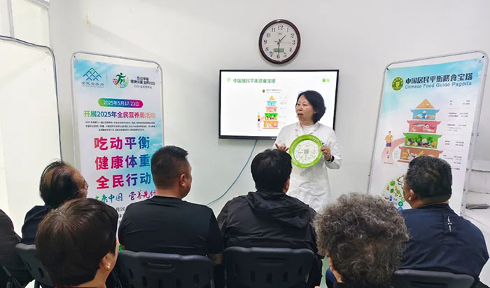 丹东市临床营养质控中心执行主任王丹阳,以《吃动平衡 健康体重》为题进行讲座。她用通俗易懂的语言,结合生活实例,详细讲解了合理膳食与适量运动对维持健康体重的重要性,让居民们认识了到饮食与运动合理搭配的重要意义。
