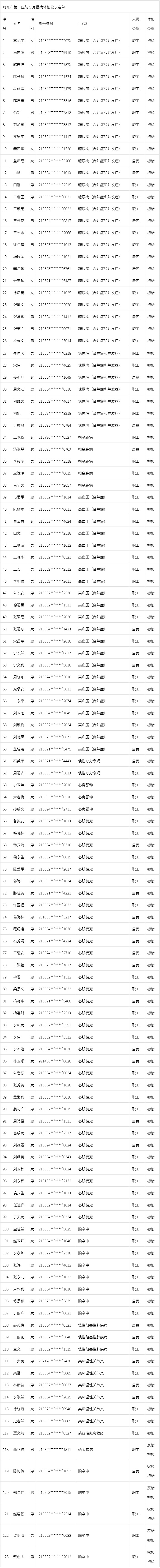 五月慢病体检公示名单