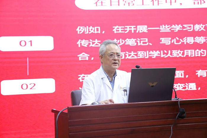 会上,院党委书记、院长李涛以《深入贯彻中央八项规定精神学习教育》为题讲授专题党课。李涛院长紧密结合医院工作实际,从深刻领会中央八项规定精神的重大意义、精准查摆当前工作作风存在的突出问题、系统部署全院作风建设的强化举措、以及严明违规吃喝纪律红线要求等四个方面,为全院党员干部上了一堂主题鲜明、内涵深刻、教育性强的党课。