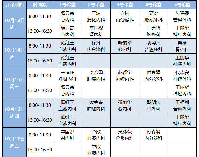 【就诊贴士】丹东市第一医院专家门诊10月13日—17日开诊安排