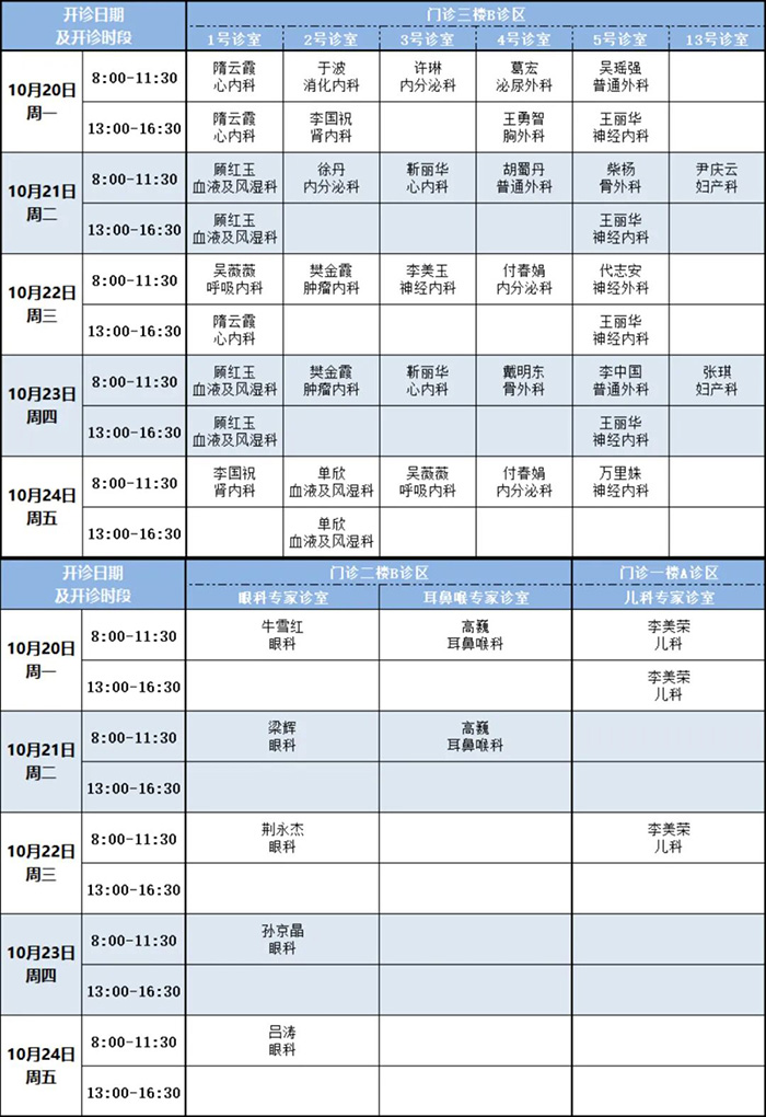 专家门诊本周开诊安排