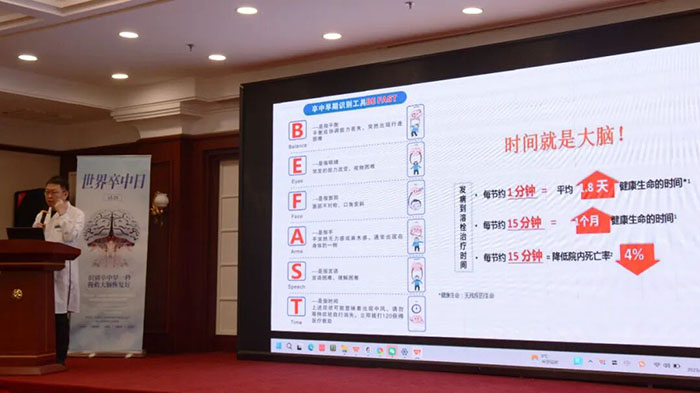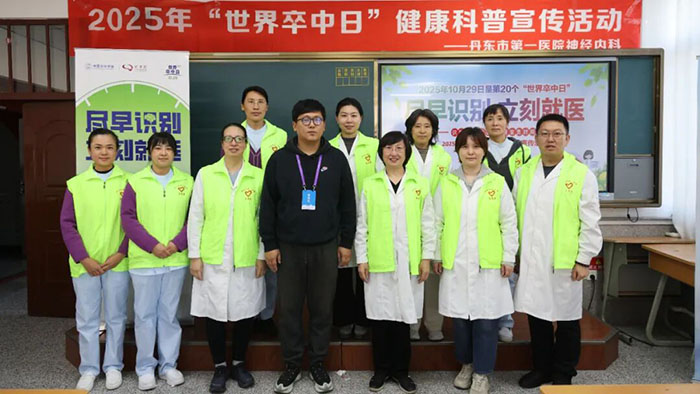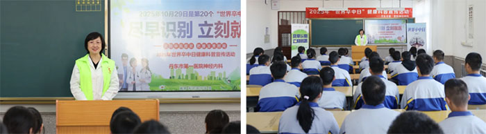 今年的10月29日是第20个世界卒中日,今年的主题是“尽早识别、立刻就医”。在今年世界卒中日来临前夕,我院神经内科科普宣讲团队来到丹东职专和丹东阿尔卑斯电子有限公司,向广大青少年及企业员工宣讲脑卒中的早期识别和预防知识,约有130余人次参加了此次系列科普宣教活动。