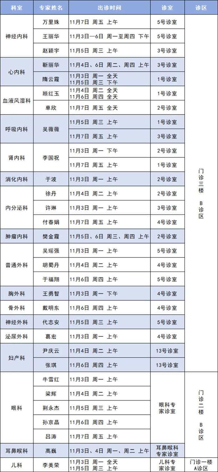 为切实满足广大市民多元化的就医需求,进一步提升市民看病就医体验,我院官微平台即日起将每周发布“专家门诊开诊安排”专栏!