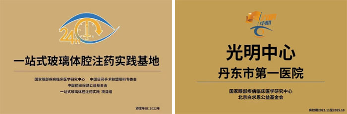 值得一提的是,在我院副院长、丹东市眼科医院院长牛雪红的带领下,科室骨干积极参与国家眼部疾病临床医学研究中心开展的“光明中心”项目,使科室成为全国首批“一站式玻璃体腔注药中心”之一。凭借专业服务与规范诊疗,多次荣获“全国优秀光明中心”等荣誉称号,为日间门诊的高质量服务提供了有力保障。