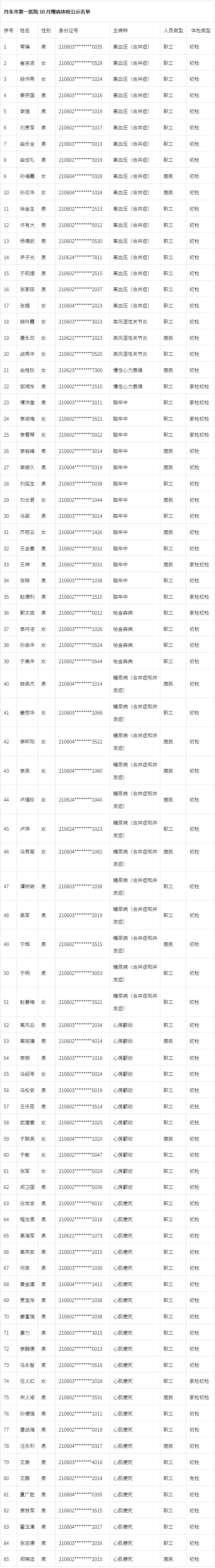 十月慢病体检公示名单