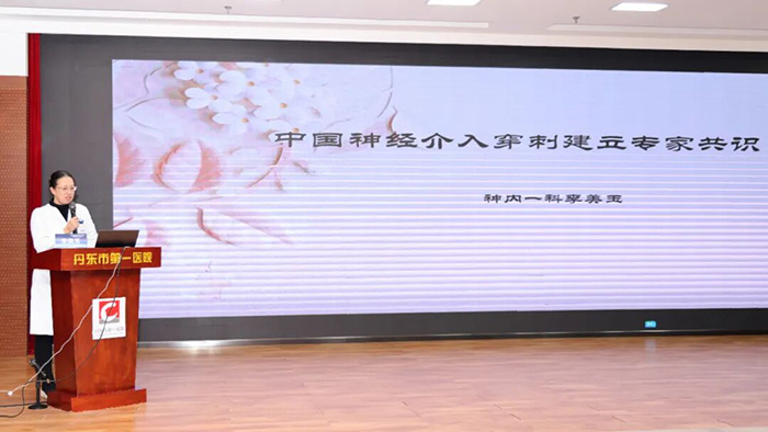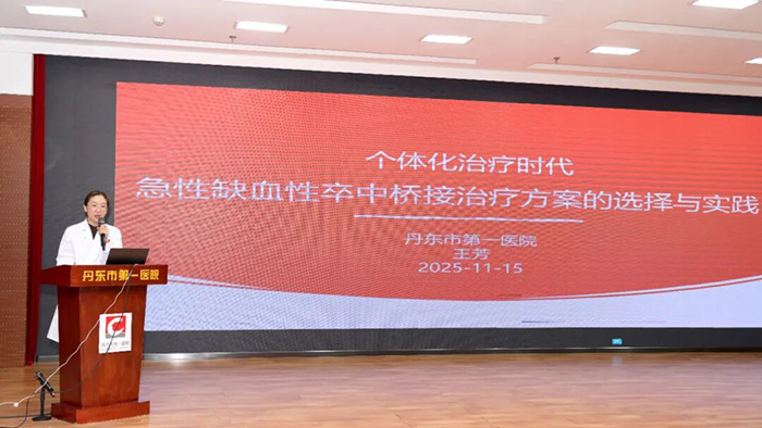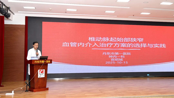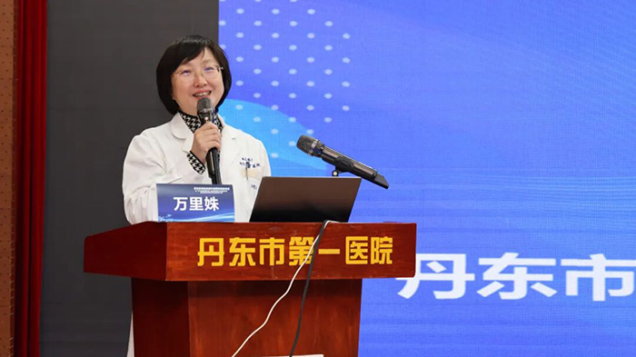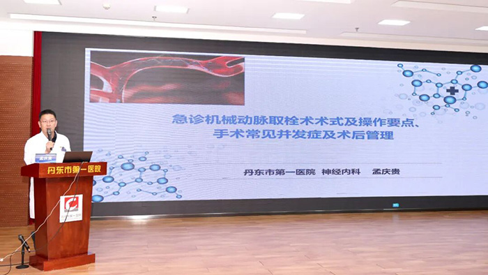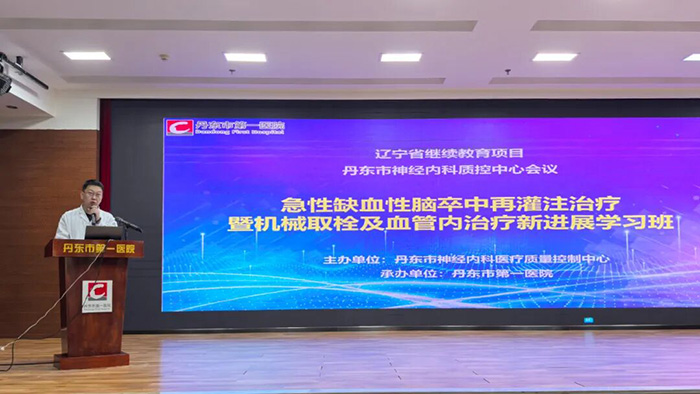 本次会议主席、丹东市神经内科质控中心主任、我院神经内科主任万里姝在致辞中表示:神经介入再灌注治疗在急性脑血管疾病,尤其是急性缺血性脑卒中的救治中地位极其重要。希望通过本次继续教育项目,推动我市神经介入再灌注技术实现规范化诊疗与持续发展,让更多江城患者受益。