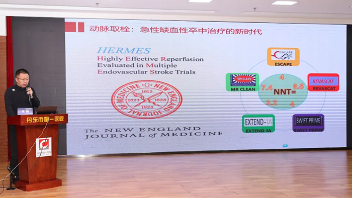 我院神经内二科主任赵颖宇讲解《急性缺血性卒中早期血管内介入诊疗影像评估专家共识》。