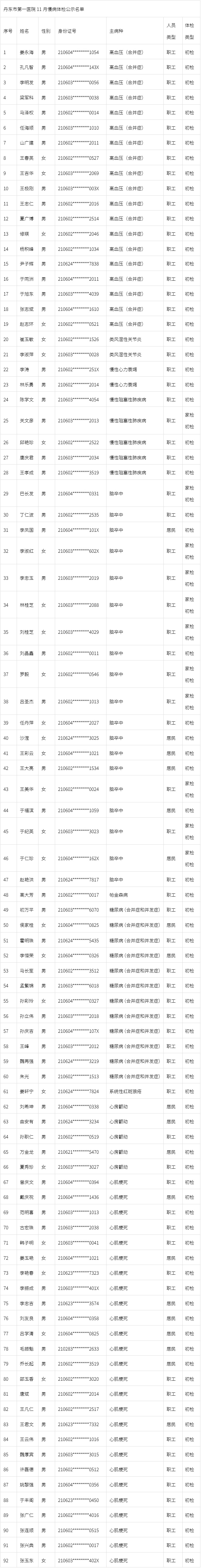 十一月慢病体检公示名单