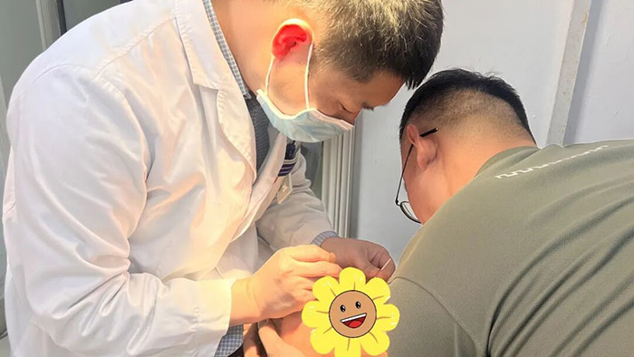 剧烈的疼痛和瞬间模糊的视线让杨先生慌了神,家人立刻驱车,紧急赶往我院眼科。接诊的李新伊医生第一时间为他做了检查,结果令人担忧:杨先生的左眼睑有一道约1厘米长的浅层皮肤裂伤,眼睑明显水肿,眼内前房出血,当时左眼视力只剩下“感光”。面对惊慌失措的杨先生和家人,李医生一边迅速进行止血、清创消毒处理,一边耐心解释病情和治疗措施:“出血会慢慢吸收,视力有很大希望恢复,您先别太担心……”专业而温暖的话语,让杨先生紧绷的情绪渐渐放松下来。
