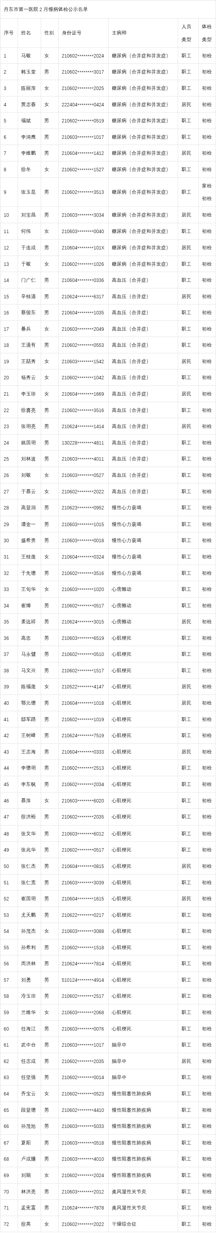 二月慢病体检公示名单